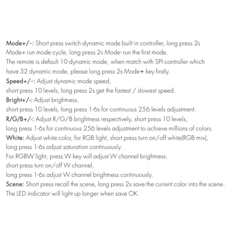 Controle Remoto para controlador de Fita LED RGB/RGBW SPI IC - 1 Zona - RF 2.4G