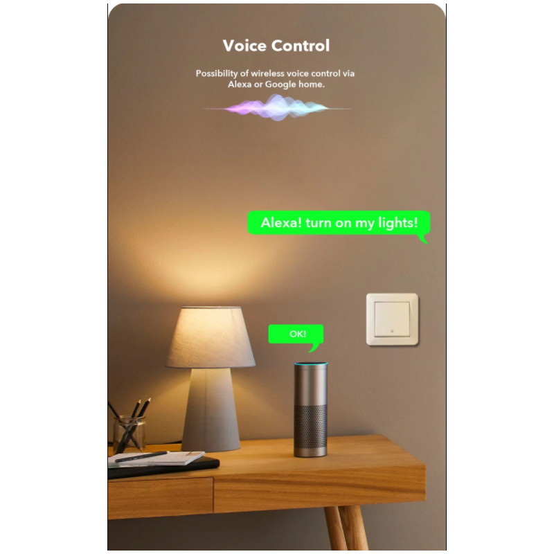 Dimmer SMART WIFI 250W Tuya APP. Este dimmer LED permite-lhe controlar a intensidade da luz usando uma tecla PUSH ou qualquer dispositivo que suporte a aplicação Tuya APP. É compatível com a maioria das lâmpadas LED com regulação de fluxo luminoso. Também funciona com transformadores de halogéneo ou electrónicos e iluminação incandescente. Graças ao aplicativo TUYA é possível fazer o controle de voz sem fio comAlexa ouGoogle Home.