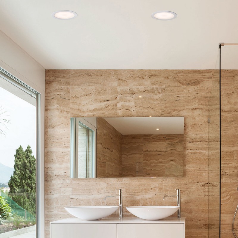 Downlight LED estanque embutido de 15W de potência e driver incorporado, que permite sua conexão direta a 220-240V/AC. A conexão à rede elétrica se realiza de forma simples, parafusando fase e neutro a parte posterior e cobrindo as conexões com a tampa fornecida. O parafuso e a porca da parte traseira impedem a entrada de umidade ao sistema elétrico.