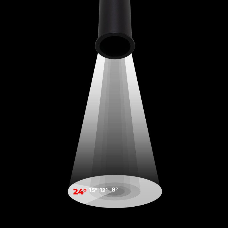 - Ângulo de abertura preciso: 24° para uma iluminação focada.