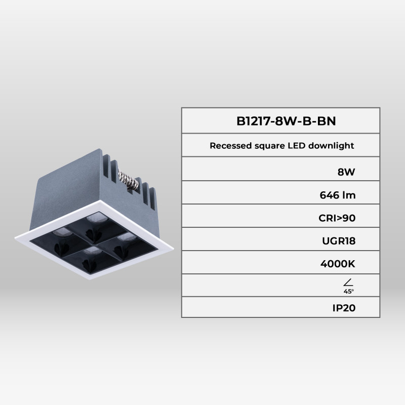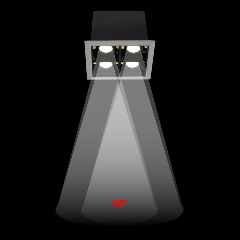 Downlight LED quadrado de encastrar 8W - 4 focos - UGR18 - CRI90 - Chip OSRAM - Branco