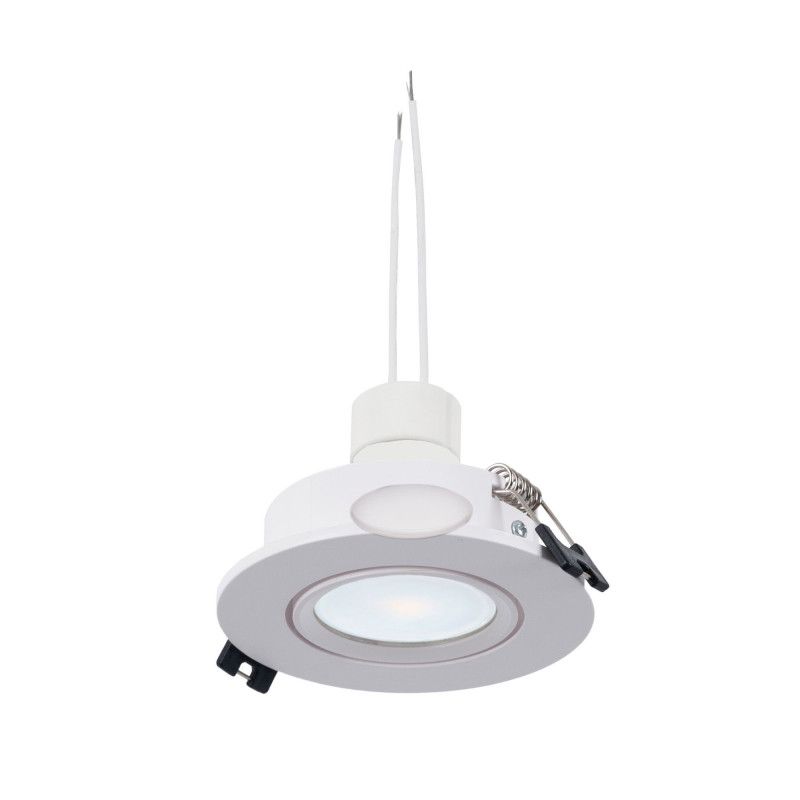 - Anel de downlight basculante: Policarbonato em branco, regulável e fácil de instalar encastrado por meio de molas de pressão.