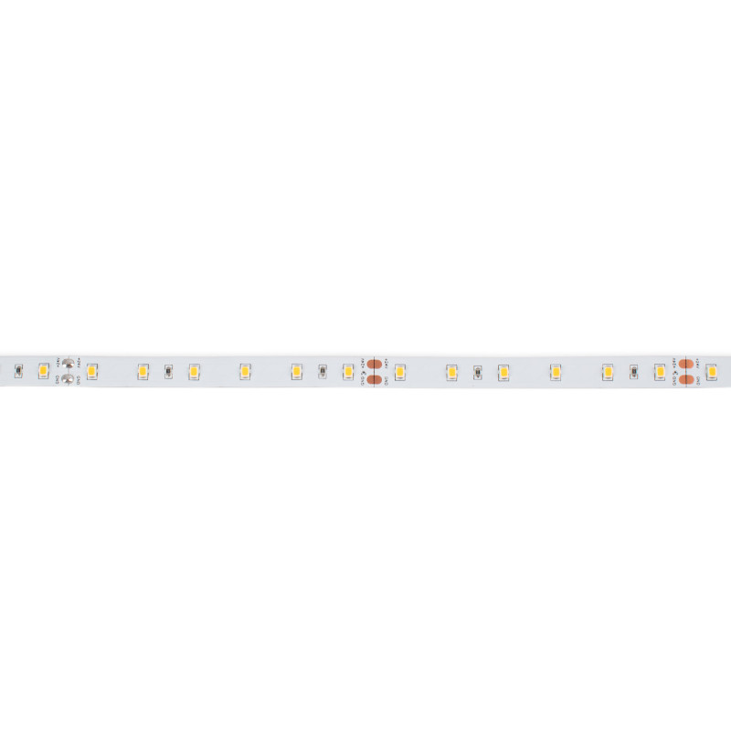 Fita LED monocromática de 24V com uma potência de 12W/m, concebida para utilizações que exijam uma emissão luminosa média/baixa. Devido ao seu grau de proteção IP20, é adequada para utilização em interiores, mas pode ser utilizada em exteriores, desde que sejam utilizados perfis estanques.