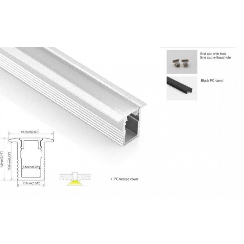 Perfil de alumínio de encastrar para fita LED - 13x12mm - Fitas LED ≤5mm - 2 metros