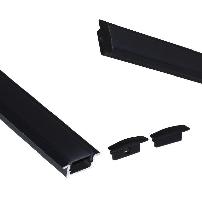 Perfil de alumínio para encastrar para fita LED com difusor - 2 tampas - 23x8mm - 2 metros