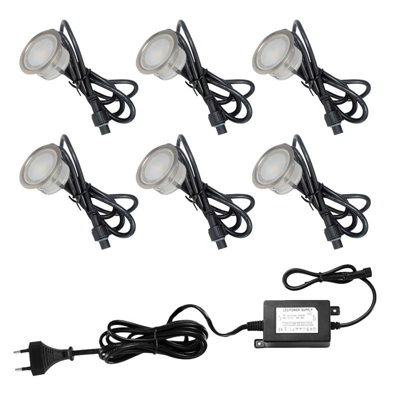 Kit de 6 Candeeiros de chão rebaixados Ø30x17mm 0,3W 12V-DC, IP67