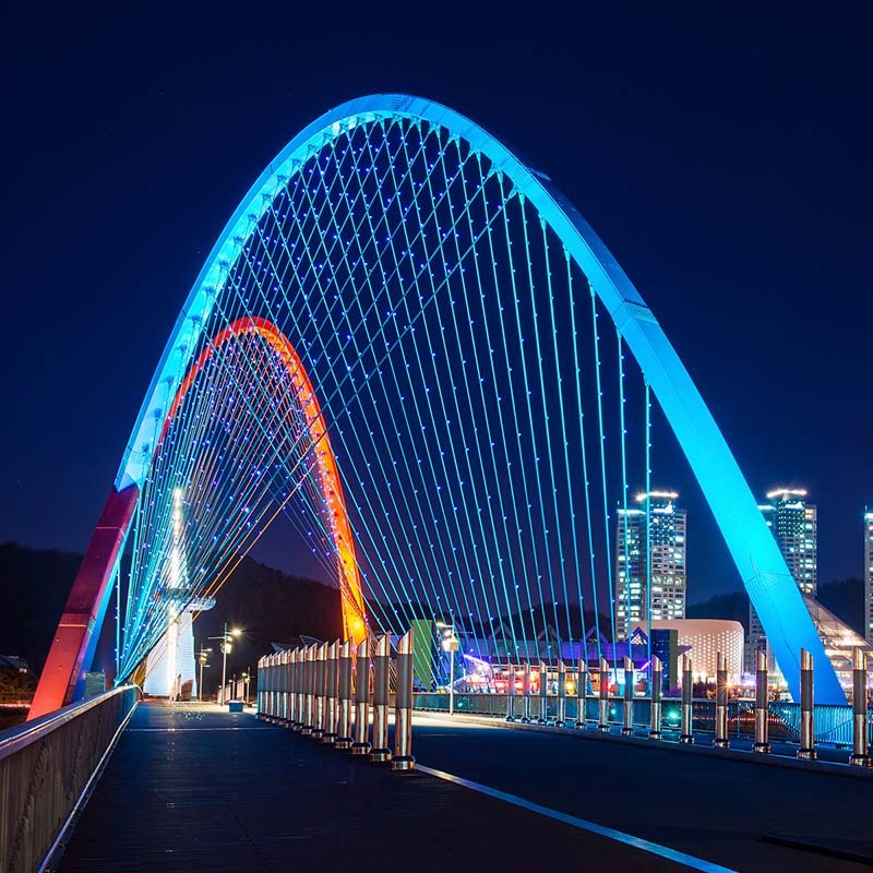 A luz Wall Washer RGB caracteriza-se pela sua flexibilidade, adaptando-se a ângulos curvos para realçar texturas e dar profundidade à área iluminada.