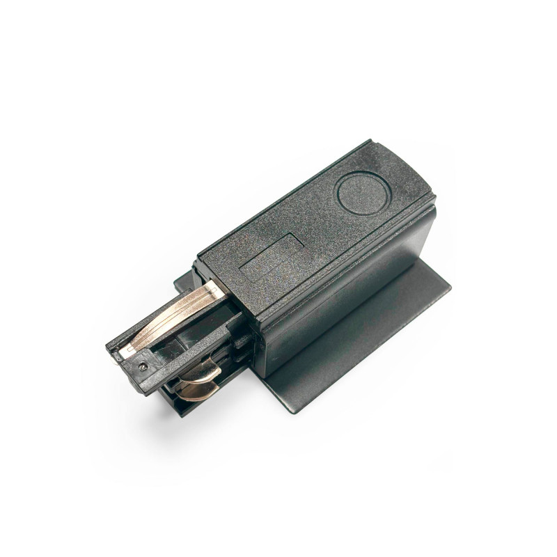 Este conetor de arranque facilita a alimentação de calhas trifásicas com qualquer fonte externa compatível, oferecendo flexibilidade para sistemas de iluminação personalizados.