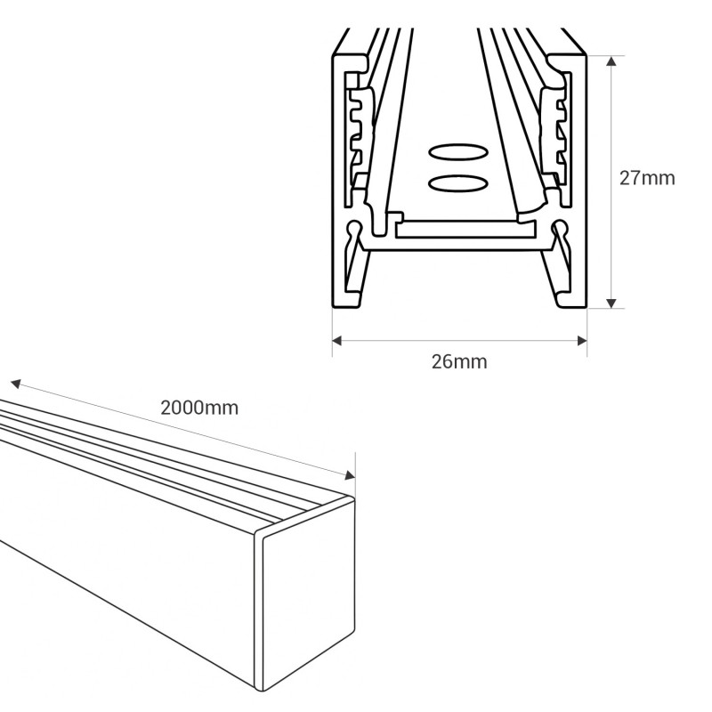 Trilho magnético 2627 de superfície e suspensão - 20mm - 48V - 2 metros