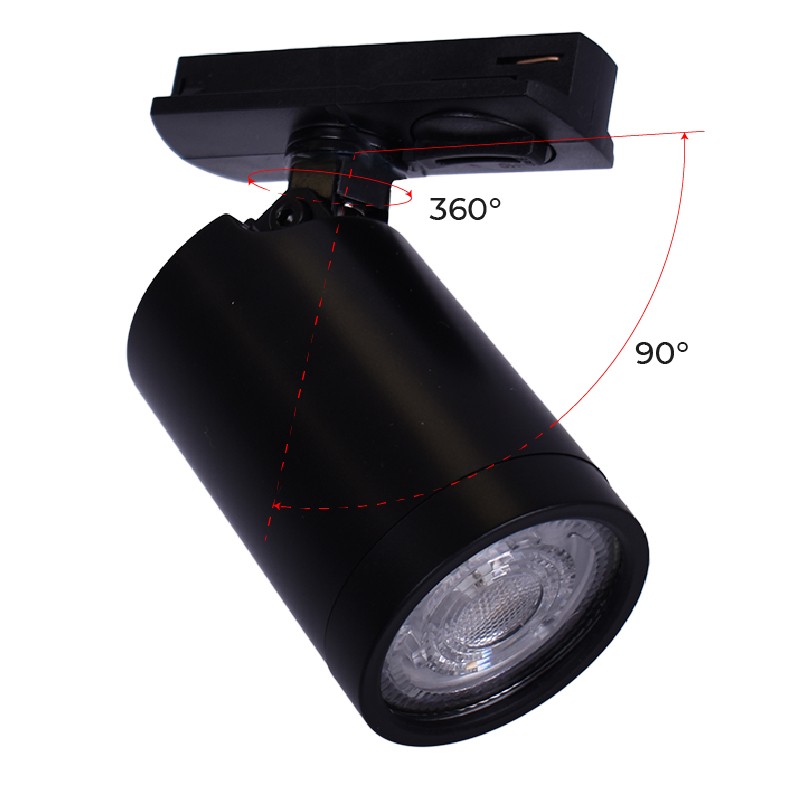 Foco monofásico para carril com casquilho GU10, ideal para iluminar grandes áreas e tectos altos. A luz emitida pelos holofotes é precisamente focada e direcionada para realçar as características dos objectos à distância.