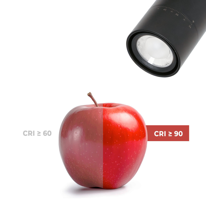 - Iluminação de alta qualidade: O chip LED Bridgelux assegura uma elevada luminosidade e restituição de cor (CRI>90), garantindo uma restituição de cor fiel e vibrante, perfeita para pontos de venda.