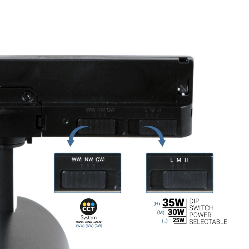 Projetor LED para trilho trifásico - Potência ajustável + ZOOM: 25W/30W/35W - CCT