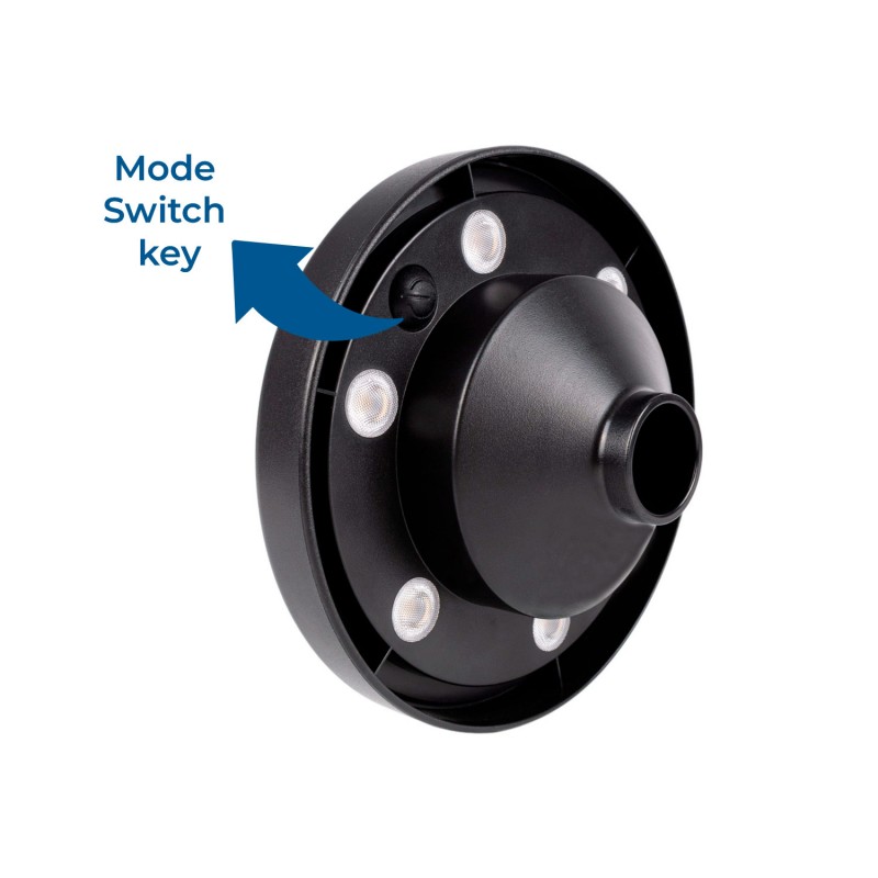 Cada modo é selecionado pressionando um botão localizado na base por 2 segundos: