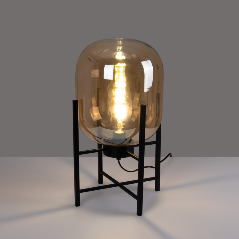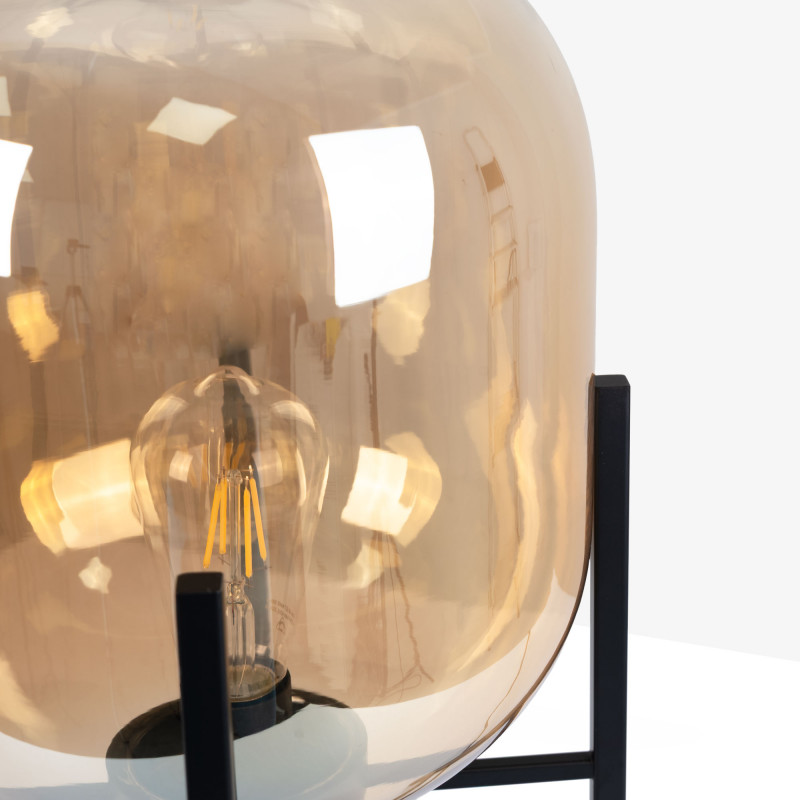 - Cores atractivas: Abajur de vidro disponível em âmbar ou cinzento fumado.