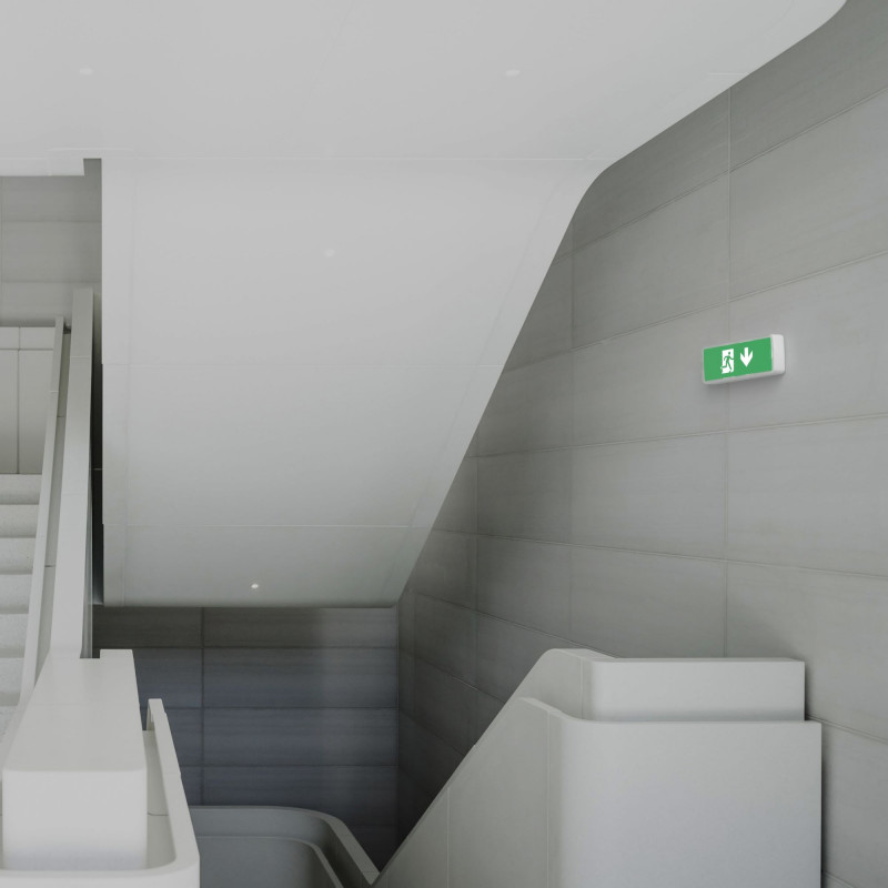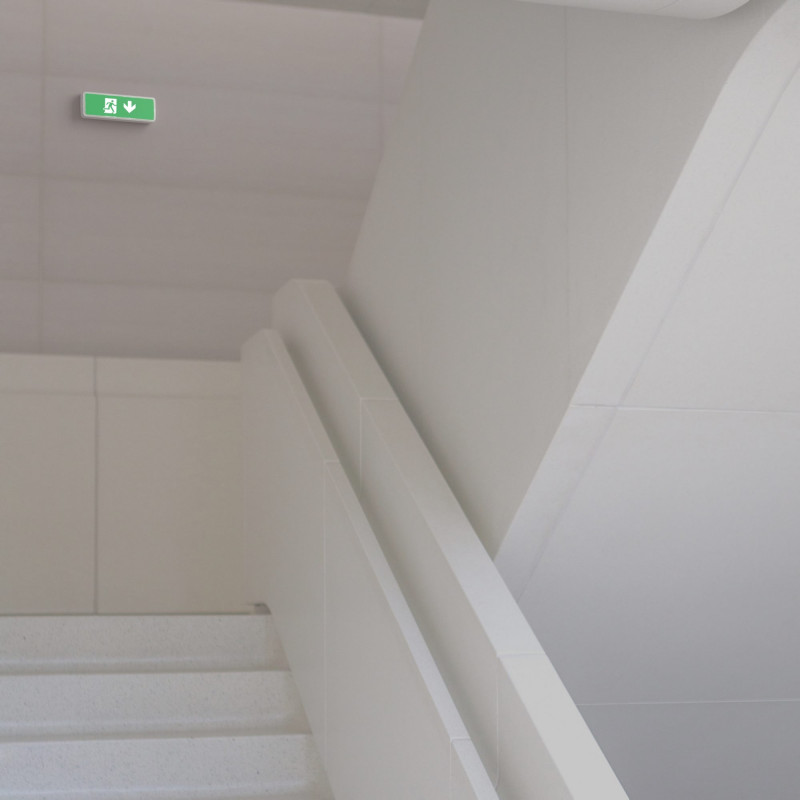 Inclui um pictograma autocolante que se fixa facilmente na luminária e permite assinalar a localização da saída em momentos críticos.