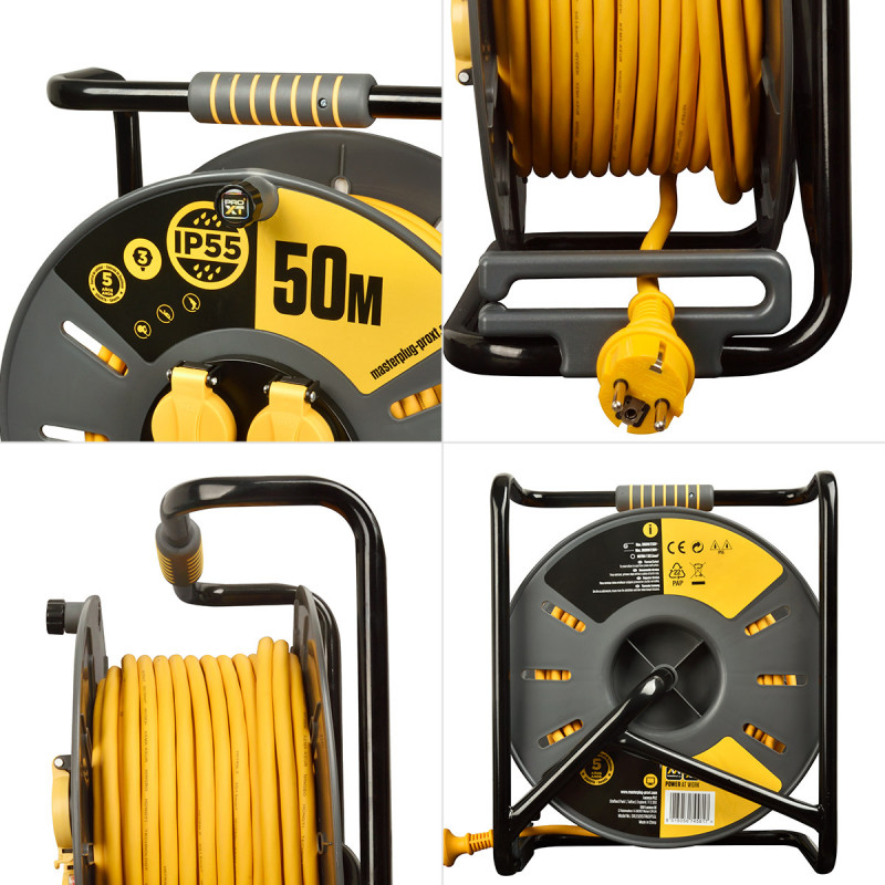 Enrolador de cabos Pro-XT - 3 saídas - Cabo de alta visibilidade 3x1,5mm2 - 50m - IP55