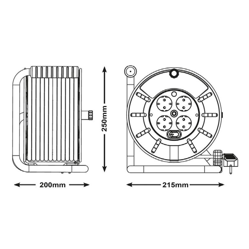 Enrolador de cabos Pro-XT - 4 tomadas - Cabo de alta visibilidade 3x1,5mm2 - 25m - IP20