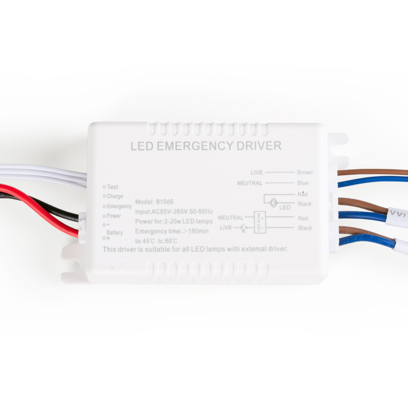 Este modelo é uma solução eficiente e discreta para incorporar a funcionalidade de emergência em luminárias LED com controlador externo. O seu design ultra-compacto torna-o ideal para espaços limitados.