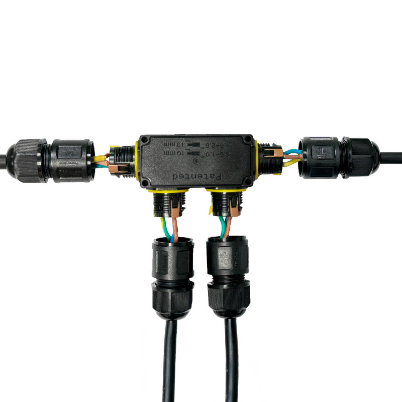 Este conetor à prova de água foi concebido para garantir uma ligação eléctrica segura em ambientes exigentes. Ideal para utilização no exterior, é submersível e resistente ao pó e à humidade.