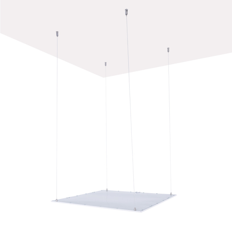 O kit de suspensão permite a instalação de painéis SLIM pendurados desde o teto, com a opção de regular a altura até 1 metro.