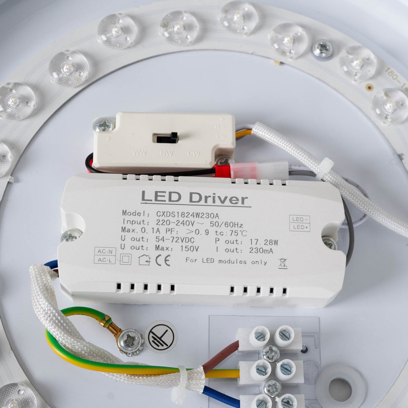 - Difusor opalino incluído: Fabricado em policarbonato, oferece uma luz suave, homogénea e sem reflexos.