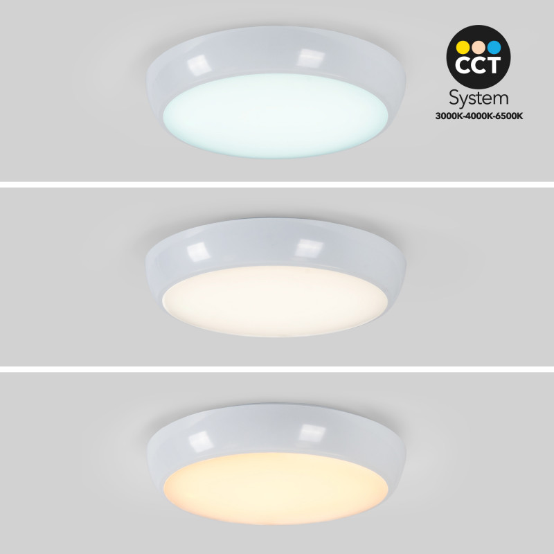 Plafon LED à prova de água / Luz de emergência - CCT - Potência ajustável 12W-16W - Ø31cm - IP65