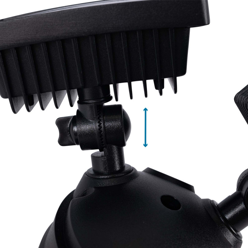 O projetor LED de exterior duplo com sensor PIR oferece uma iluminação em tonalidade branco neutro (4000K), com uma potência total de 30W (15W por foco) e um índice de reprodução cromática elevado (CRI>80), o que permite uma reprodução fiel das cores.