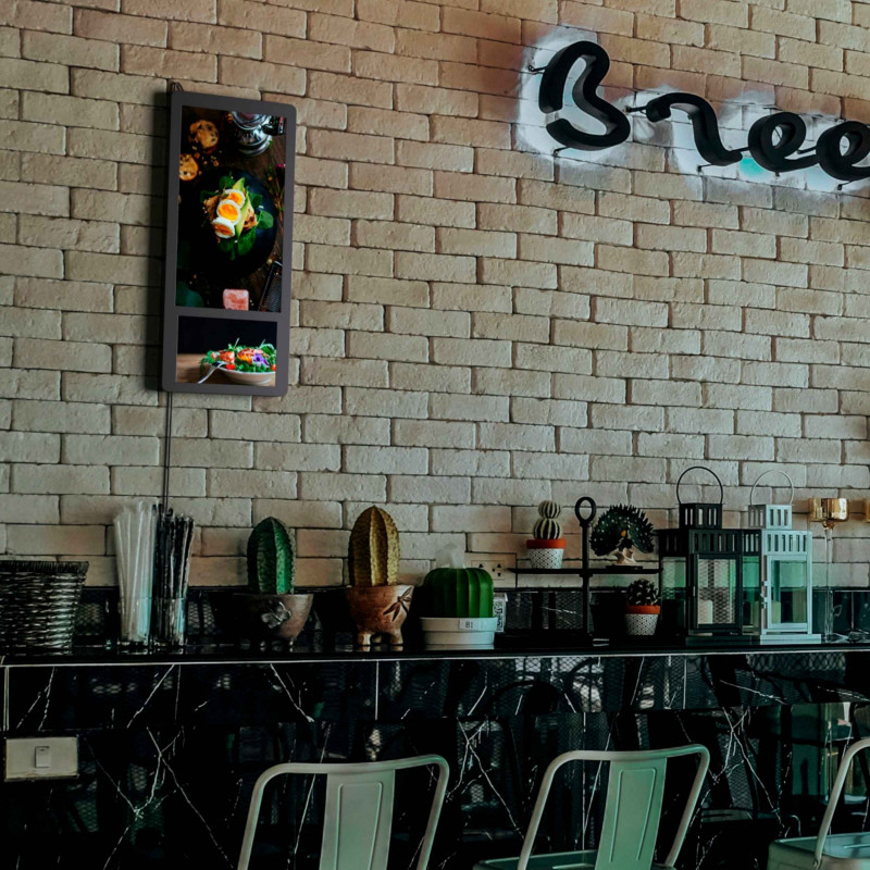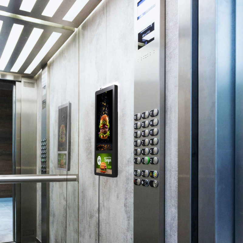 Este ecrã é ideal para ser instalado em paredes ou elevadores de lojas, hotéis, restaurantes, centros comerciais ou supermercados. A sua principal utilização é para fins publicitários, mas também pode ser utilizado para fins informativos.