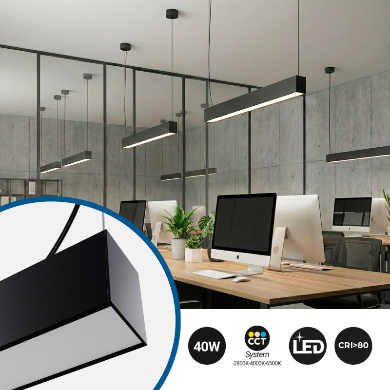 Luminária linear LED DOB CCT - 40W - 120cm - 120lm/W - PVC - Suspensão