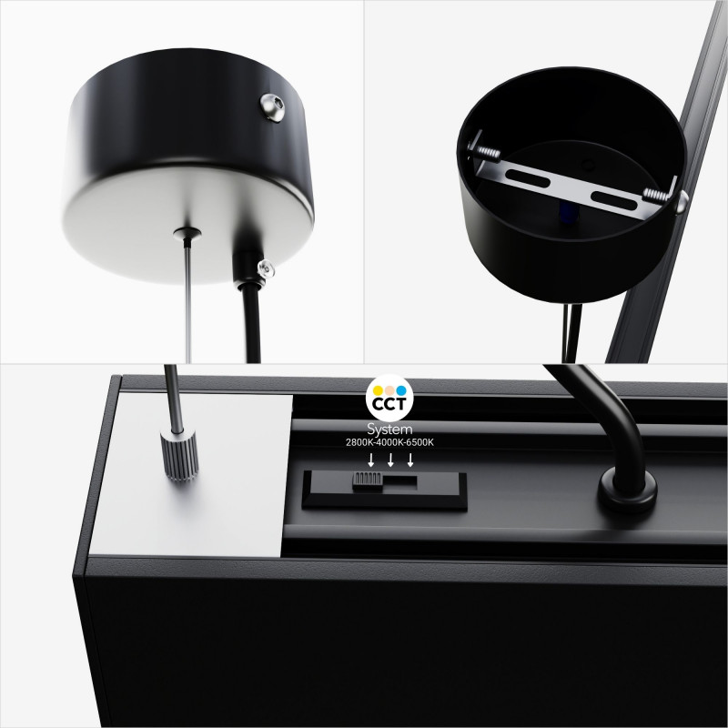 - Tonalidade ajustável: sistema CCT para ajuste da temperatura de cor entre: branco quente (2800K), branco neutro (4000K) e branco frio (6500K).