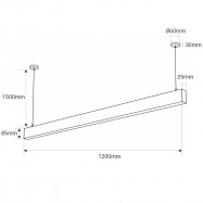 Luminária Linear LED - Subida e Descida - Potência regulável - 120 cm - UGR<19