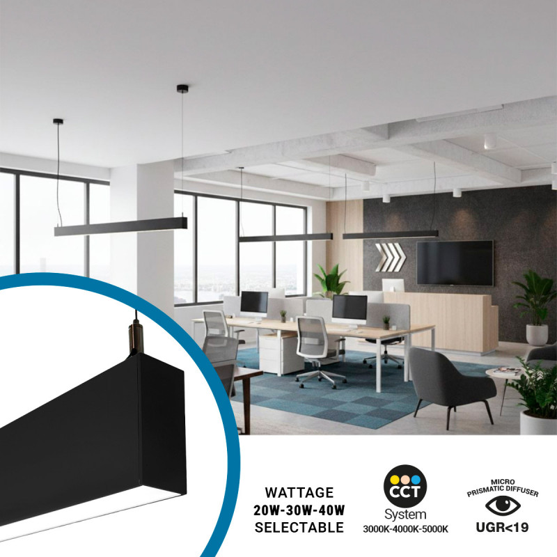 Luminária linear LED CCT - Bidirecional - Suspensão - Potência ajustável 20W/30W/40W - 120cm - UGR 19