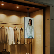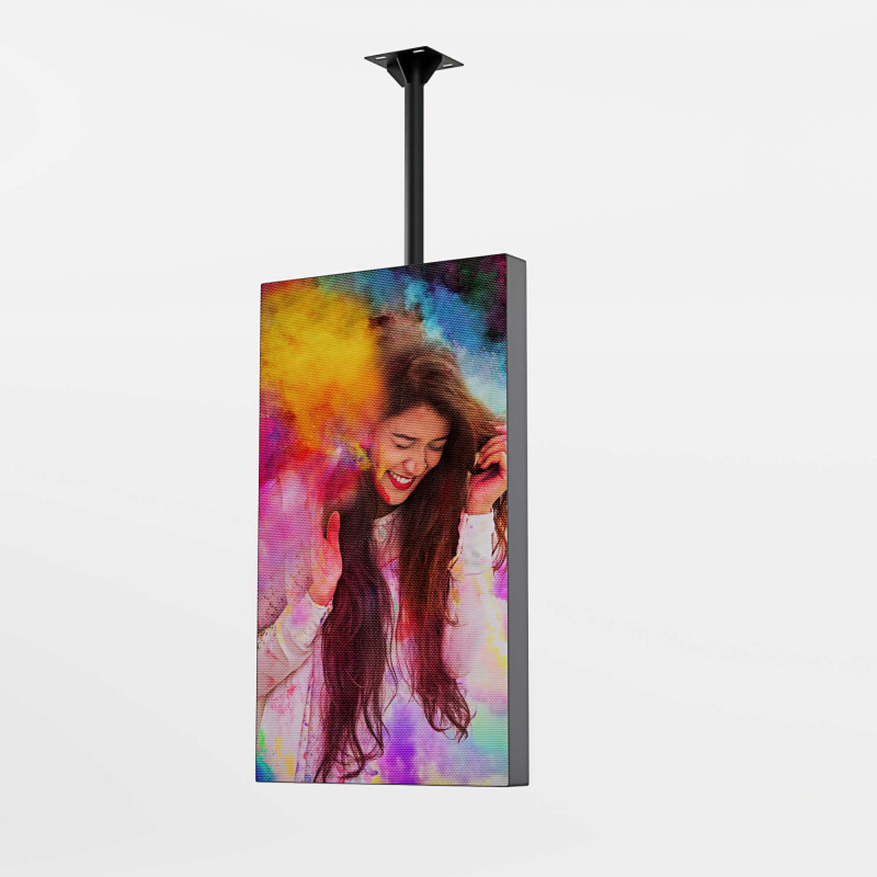 Se instala de manera suspendida desde el techo. Es importante que el techo esté diseñado para que resista el peso del display (25Kg aprox.).