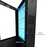 Este innovador dispositivo publicitario cuenta con un diseño elegante de doble cara, Con una estructura metálica y un cristal antivandálico de 5 mm, especialmente resistente para exteriores.