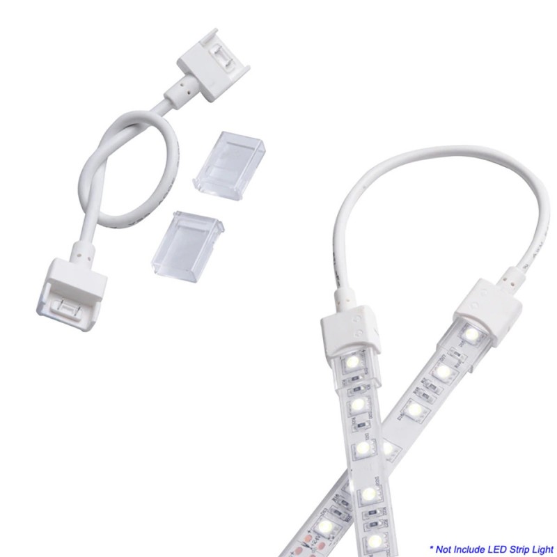 Permite conectar dos tramos de tiras LED SMD estancas de 10 mm de ancho (12 mm si se considera el recubrimiento de silicona). Incluye un cable flexible de 79mm de longitud que cuenta con un conector en cada extremo.
