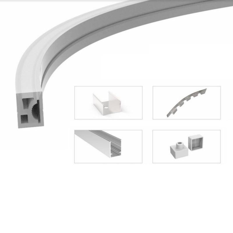Funda de silicona flexible para convertir tira LED a neón - 16x16mm - 5 metros - Curvatura lateral