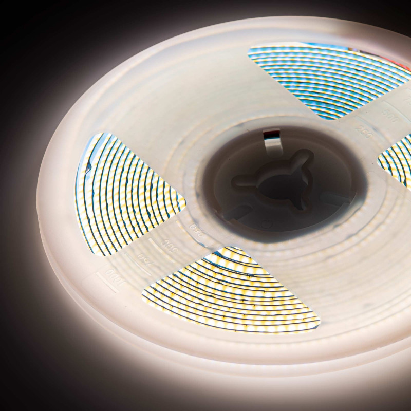 Esta tira LED incorpora tecnología COB, que le permite emitir una luz continua, sin puntos visibles, especialmente recomendable cuando se desea una iluminación homogénea, trabajar con superficies reflectantes o utilizar difusores transparentes.