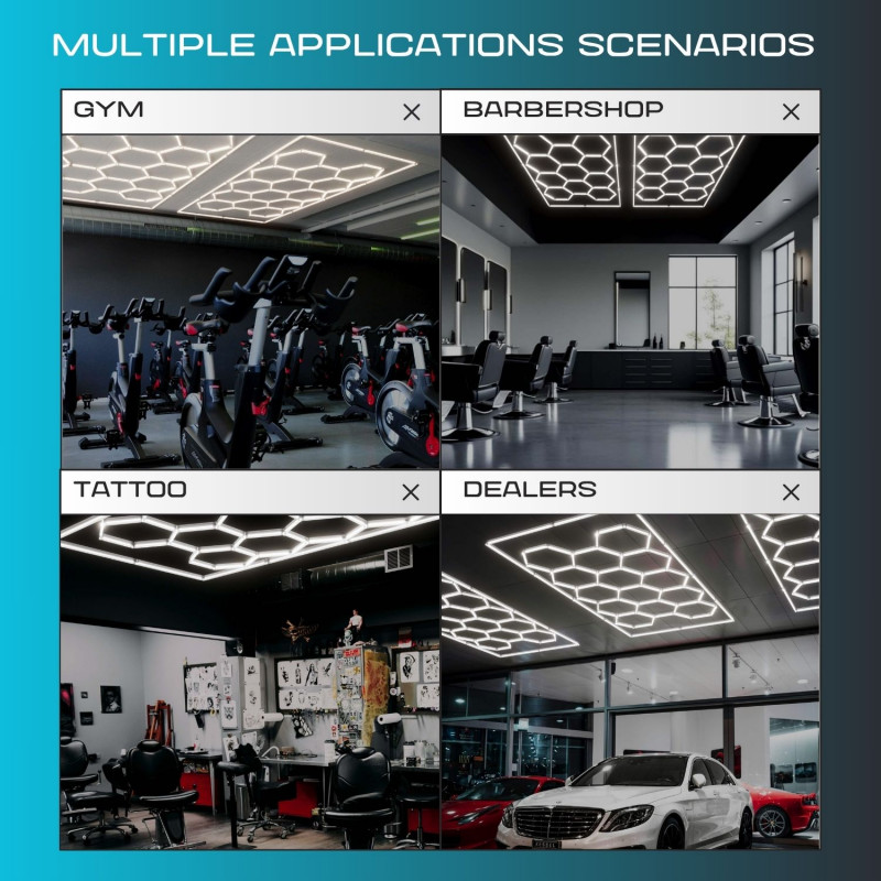 - Diseño modular: Cada luminaria encaja perfectamente con otras para formar estructuras hexagonales o composiciones personalizadas, facilitando la creación de diseños únicos, modernos y visualmente impactantes.