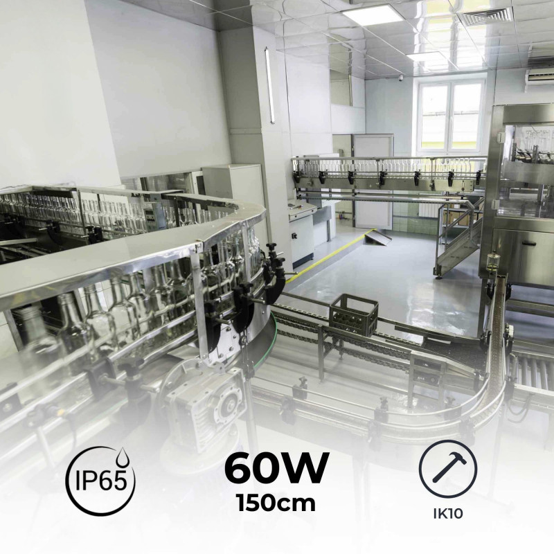 Luminaria estanca tubular para uso industrial - 150cm - 60W - 6900lm - IP65 - IK10